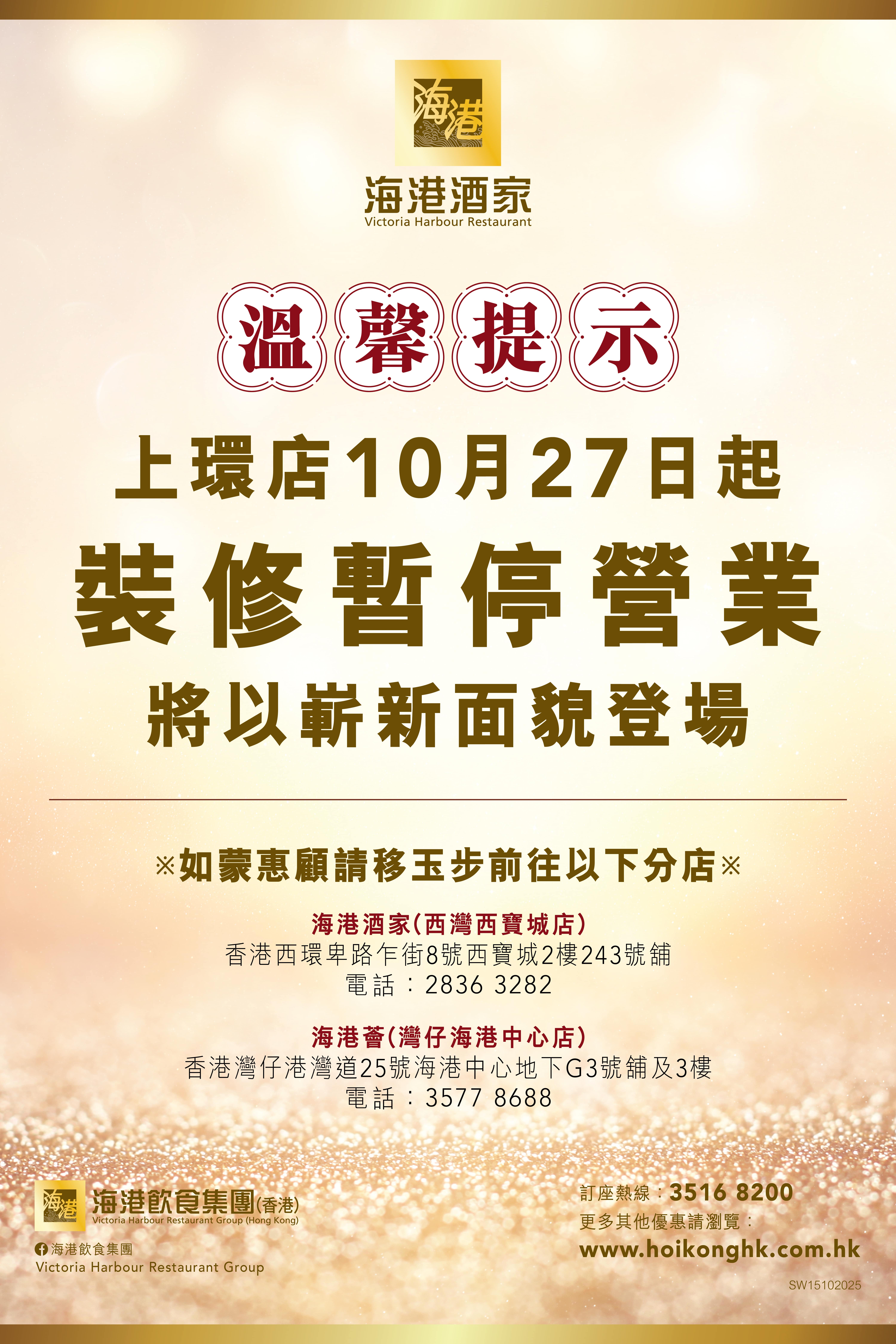 上環店10月27日起裝修暫停營業 將以嶄新面貌登場