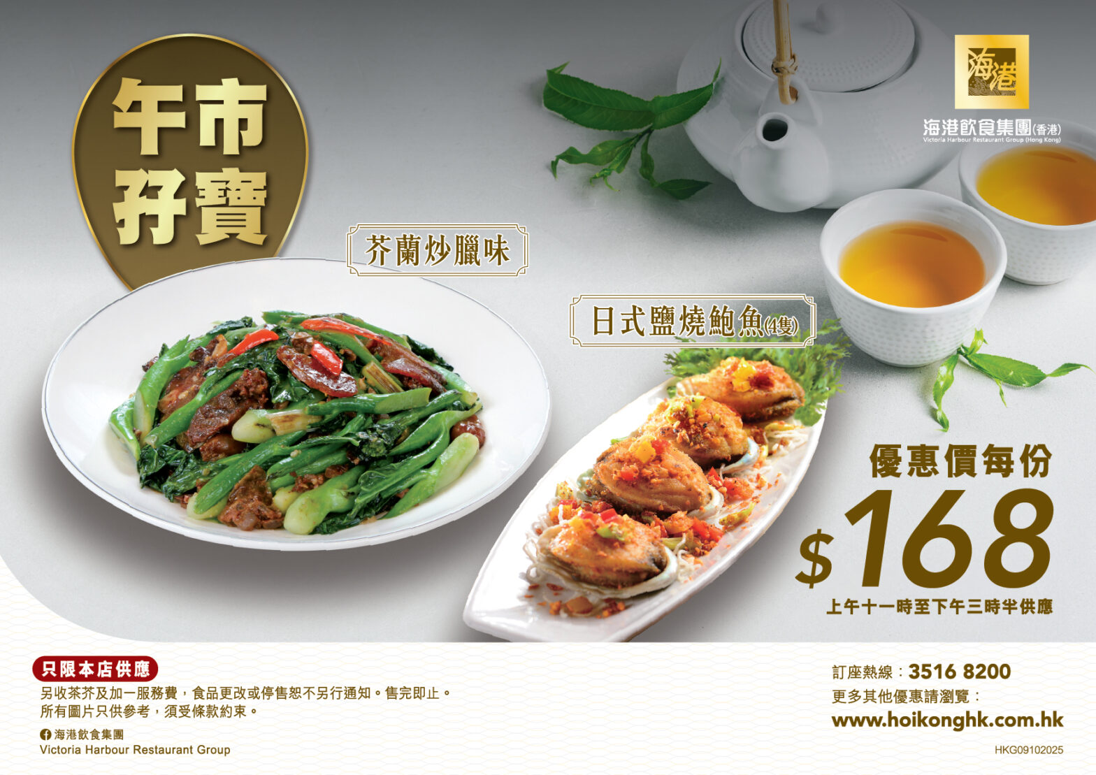 海港酒家-翔龍灣店營業時間:07:00 - 23:00 (如有酒席,營業至23:30)訂座熱線:2992 0120地址:九龍馬頭角新碼頭街38號翔龍灣廣場一樓122號舖 菜單午市孖寶(海港始創、維景、上環店不適用)上午十一時至下午三時半供應人數: 人長腳蟹乳豬宴&龍蝦乳豬宴(海港薈灣仔店、尖沙咀店、利舞臺店不適用)人數: 12人超值全包宴(海港上環店及海港薈不適用)人數: 6人或12人堂剪紅燒乳鴿(上環、維景、始創、馬中店不適用)星期一至五,上午十一時至下午三時供應 人數: 人歡樂賀壽彌月百日宴(上環店不適用)海港酒家上環店不適用人數: 12人豪華賀壽彌月百日宴(上環店不適用)人數: 12人古法羊腩煲堂食另收茶芥及加一服務費。人數: 人晚市優惠孖寶晚飯時段供應。菜單停售或變更恕不另行通知。人數: 人秋之蟹逅 時令大閘蟹人數: 人
