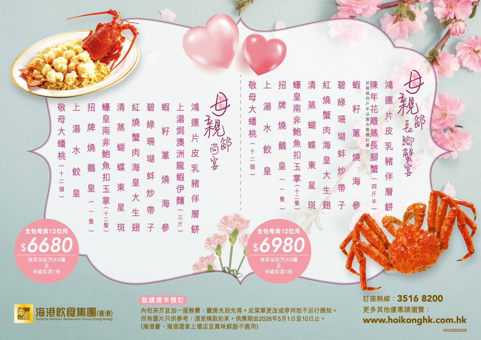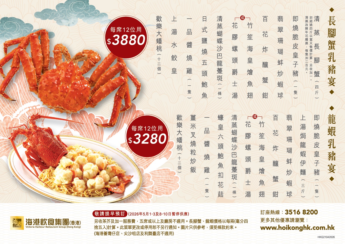 長腳蟹乳豬宴&龍蝦乳豬宴(海港薈尖沙咀店、灣仔店、利舞臺店不適用)
