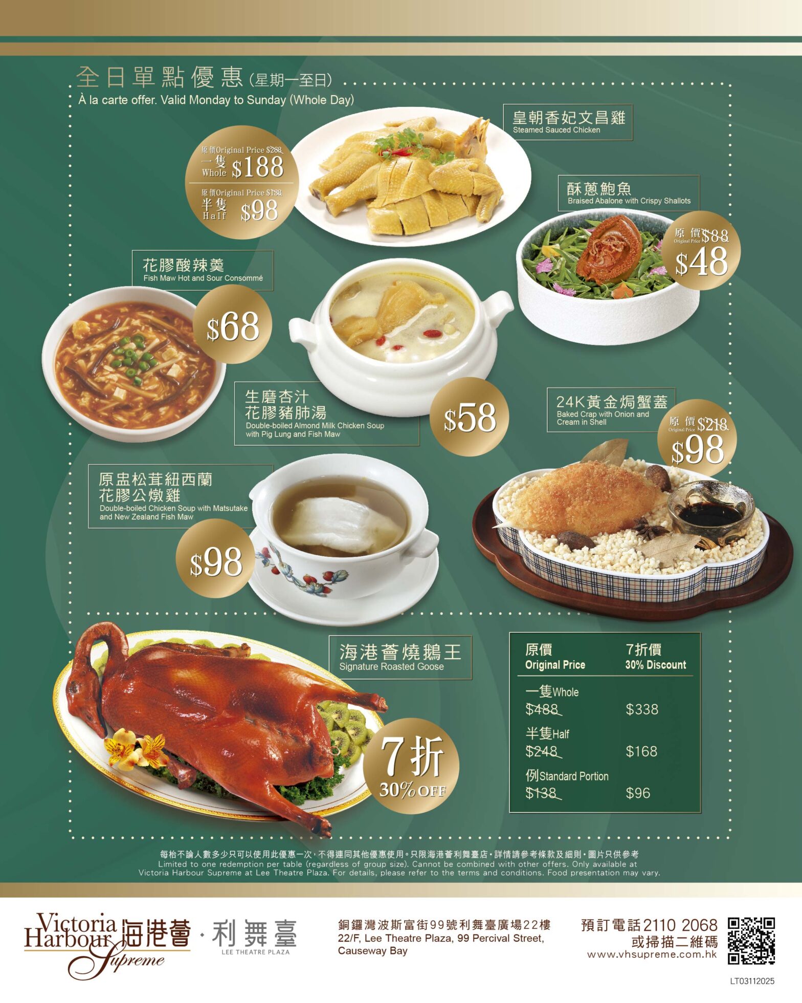 長腳蟹乳豬宴&龍蝦乳豬宴(海港薈灣仔店、尖沙咀店、利舞臺店不適用)
