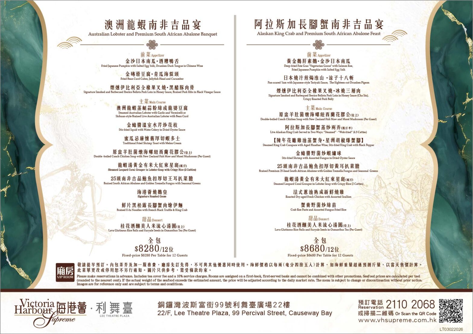 澳洲龍蝦南非吉品宴&阿拉斯加長腳蟹南非吉品宴(僅限海港薈利舞臺店供應)